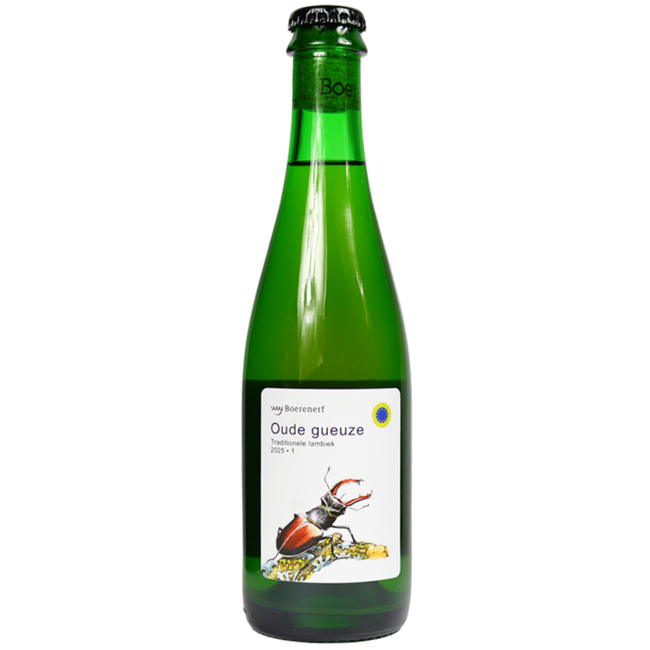 Boerenerf Oude Geuze is een verfijnde geuze die tot stand komt door het mengen van lambics van verschillende leeftijden (1, 2 en 3 jaar), met nadien flesrijping op de boerderij. Dit bier combineert traditionele lambic-methoden met een subtiele vatrijping — gebotteld en gerijpt op de locatie zelf.