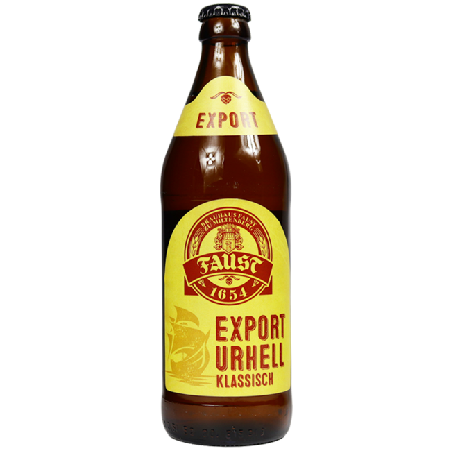 Faust Export Urhell is een klassiek Duits exportbier van Brauhaus Faust. De stijl ‘Urhell’ verwijst naar een traditioneel helder, goudkleurig lagerbier met een iets voller moutkarakter dan een standaard pils.