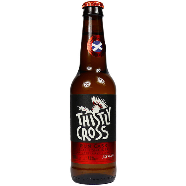 Thistly Cross Rum Cask Cider is een karaktervolle Schotse vatgerijpte cider waarin traditionele appelcider wordt verrijkt door rijping op rumvaten. Deze bijzondere rijping geeft de cider extra diepte en een warm, gelaagd smaakprofiel.
