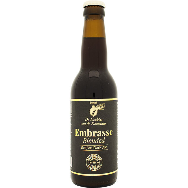 De Dochter van de Korenaar Embrasse Blended is een verfijnd houtgerijpt volmoutbier met hergisting op fles, waarin kracht en elegantie samenkomen. Deze bijzondere variant rijpt gemiddeld 6 tot 8 maanden op blended whiskyvaten, wat zorgt voor extra diepgang en een rond, verwarmend karakter.