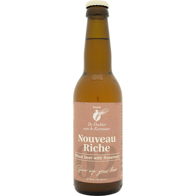 De Dochter van de Korenaar Nouveau Riche is een bijzonder tarwebier, maar dan net even anders dan je zou verwachten. Dit bier wordt niet vergist met een traditionele weizen- of witbiergist, maar juist met een schonere vergisting, waardoor de nadruk meer komt te liggen op mout, hop en kruiden.