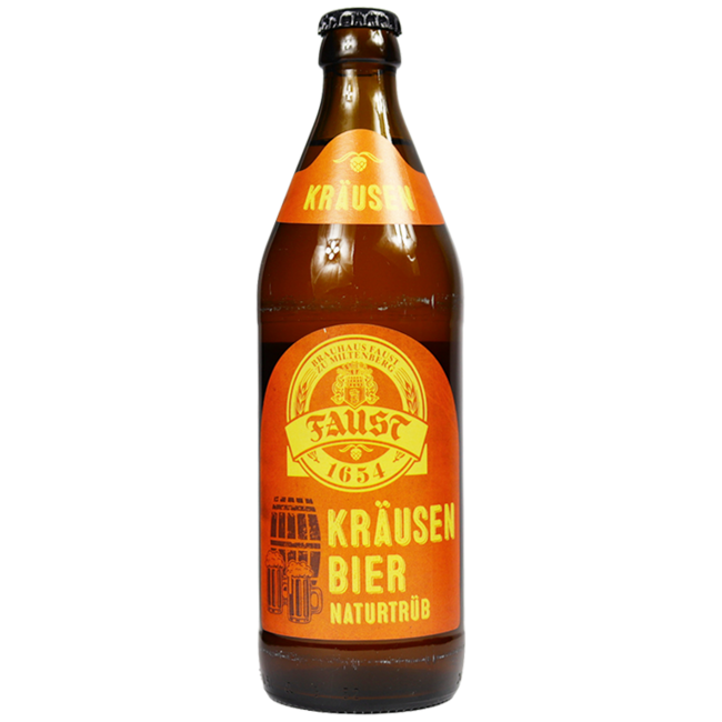 Brauhaus Faust Kräusen Bier Naturtrüb is een klassiek ongefilterd lagerbier van Brauhaus Faust, afkomstig uit Miltenberg in Franken. Dit zogenoemde Kräusenbier dankt zijn naam aan het toevoegen van jong bier tijdens de lagering, wat zorgt voor natuurlijke carbonatie en extra frisheid.