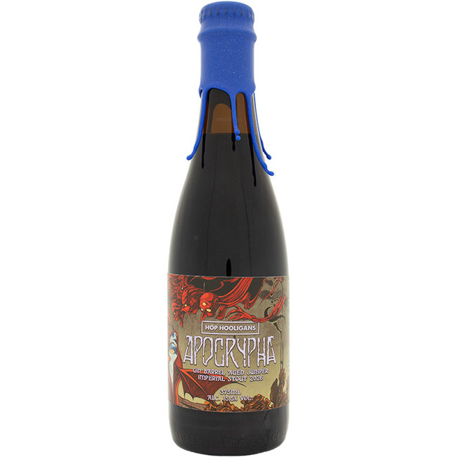 Hop Hooligans Apocrypha 2026 Gin BA Juniper is een uitgesproken gin barrel aged imperial stout uit de experimentele Apocrypha-serie. Deze bijzondere editie combineert diepe stouttonen met frisse, kruidige accenten afkomstig van ginvaten en jeneverbes.