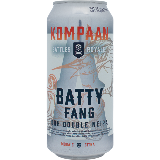 Batty Fang van Kompaan Brouwerij draait volledig om hop. Deze Double NEIPA is dubbel dry-hopped en laat geen ruimte voor omwegen.