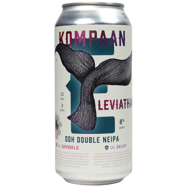 Met Leviathan zet Kompaan Bier een indrukwekkende Double New England IPA neer die draait om maximale hopexpressie en een romige body. Deze hazy krachtpatser is gebrouwen met Superdelic en Galaxy hop, een combinatie die garant staat voor explosieve fruitigheid.