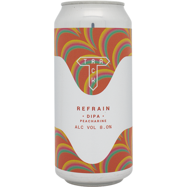 Refrain is een krachtige NEDIPA van 8% van Track Brewing Co., volledig gebouwd rond de expressieve Peacharine hop uit Nieuw-Zeeland.