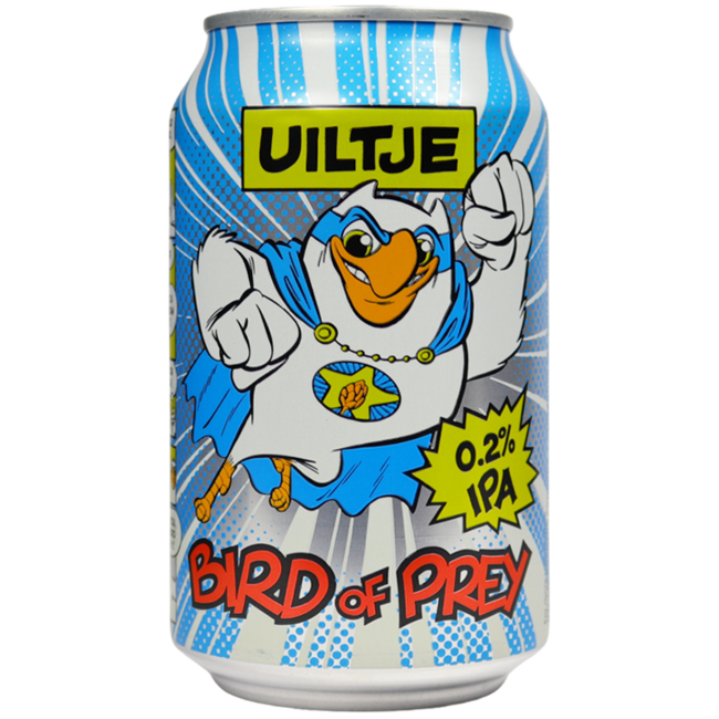 Uiltje Bird of Prey 0.2 is de alcoholarme uitvoering van Uiltjes bekende IPA, gebrouwen door Uiltje Brewing Company. Met slechts 0,2% alcohol behoudt dit bier zijn herkenbare hoppige signatuur, maar dan in een licht en doordrinkbaar jasje.